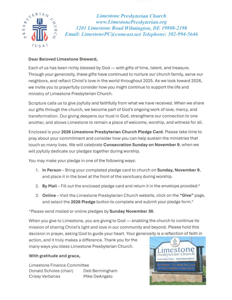While annually a session approved budget is presented to the congregation, members of our Finance Committee are happy to talk with you about any questions you may have. You can also contact our Treasurer, Deb Bermingham at:
